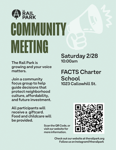 Folk Arts-Cultural Treasures Charter School 1023 Callowhill St., Philadelphia, PA, United StatesThis in-person community focus group is part of Friends of the Rail Park’s Community First Plan, an effort to understand how the Rail Park can grow in ways that reflect its values and responsibilities to the neighborhoods it runs through. These conversations help guide how we approach growth with care and accountability while exploring how we... Read more »