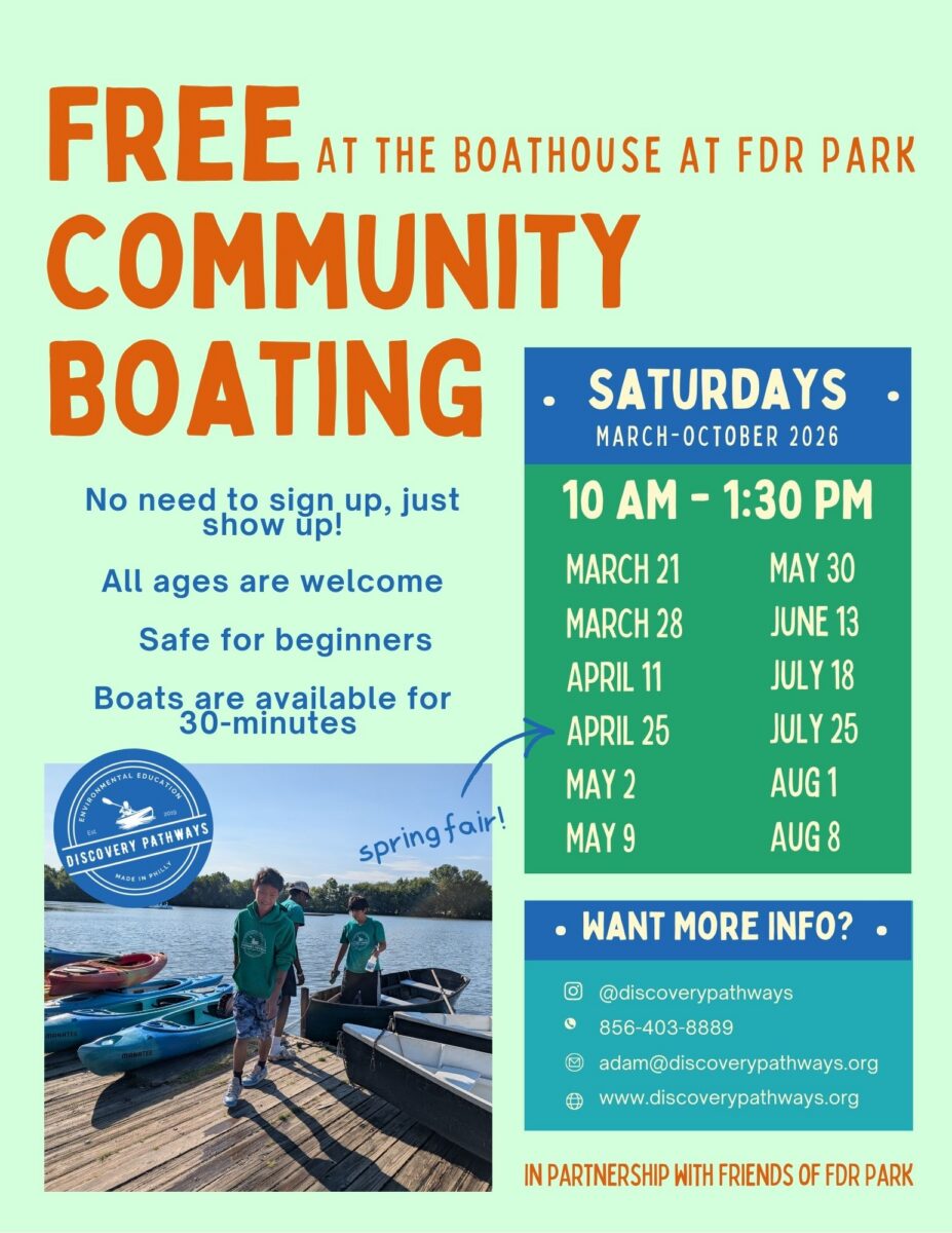 FDR Park Boathouse 1900 Pattison Ave, Philadelphia, PA, United StatesJoin us for Free Community boating days at least twice a month. We provide basic instruction and support for you and your family to get out and enjoy a day... Read more »